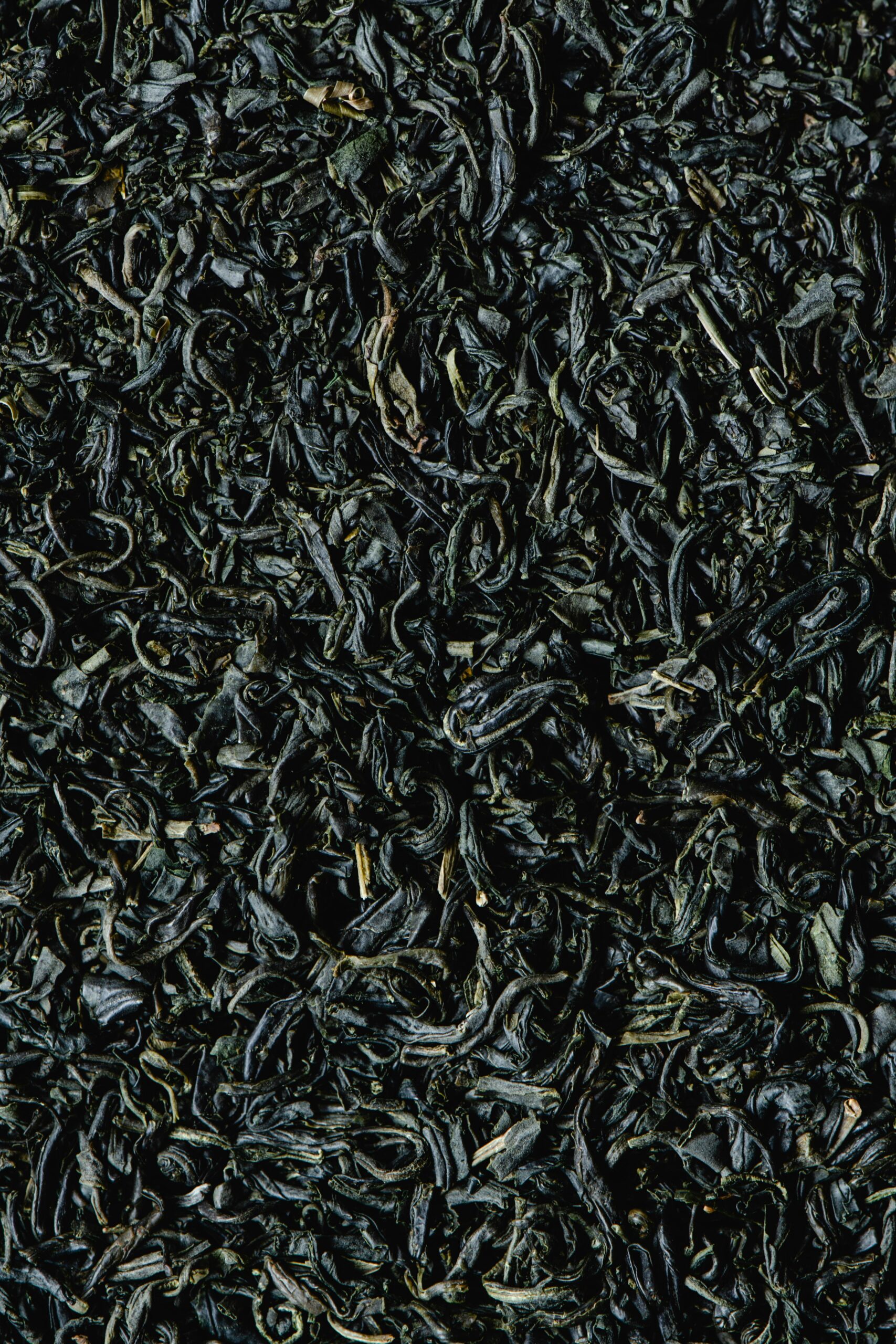 High-resolution image showcasing the texture of organic dried tea leaves, perfect for backgrounds.Organic Green Tea-500 grams